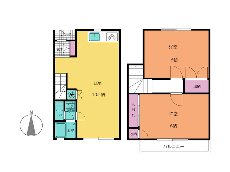 洋室 6.0帖 2室 / LDK 10.5帖 1室 / |
